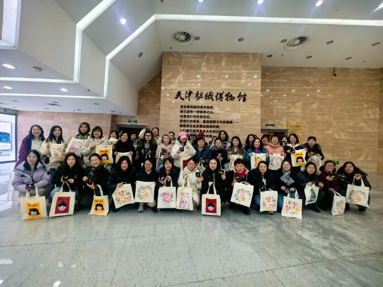 系列活动首站走进天津纺织博物馆。女职工们在专业讲解的带领下,循着“古代纺织”到“现代、当代纺织”的历史脉络,深入了解天津纺织工业的百年发展轨迹,深刻感悟其中蕴含的工匠精神与时代价值。随后的手工体验环节精彩纷呈,烫画包制作让大家将创意巧思高温烙刻于实用布包;宋锦胸针/发夹制作则在一针一线中,引领大家领略传统织锦的精致韵味。现场气氛热烈,交流不断,指尖流淌的不仅是技艺,更是对美好生活的热情。
